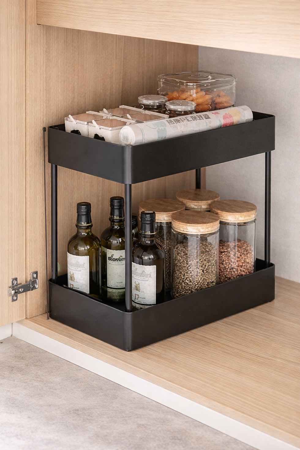 Keep dinnerware, cookware and pantry items contained within your kitchen cabinets with a range of cabinet organisers. Over cabinet hooks, bars and baskets also available.